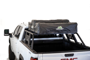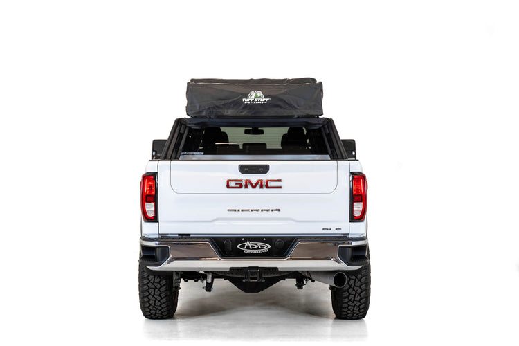 The Addictive Desert Designs ADD-Lander Overland Rack is available for all full-size pickup trucks (with some exceptions. The universal design uses a clamp mounting system, so there is no drilling into your bed rails required for installation. This will fit Ford F-Series trucks as well as the RAM, Chevy, and GMC 1500/2500/3500 series trucks.