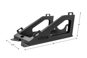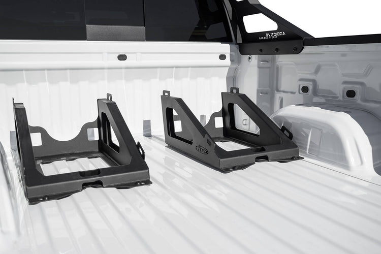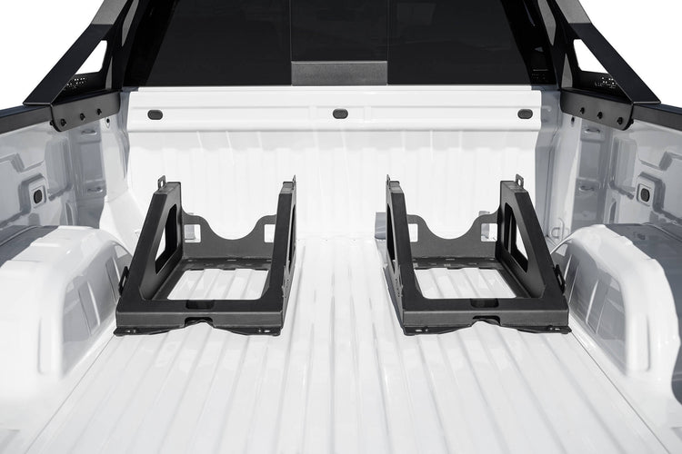 Slots cut into the front and back of the carrier support a Y-strap to hold your spare tires in place. The series of mounting holes allow you to mount the tire carrier anywhere in your truck bed. Run the tire carrier individually or side-by-side to carry a single or pair of spares to meet your needs.