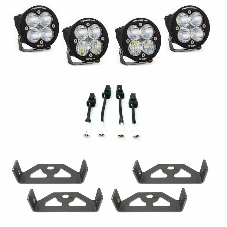 The days of rushing back to camp before the sun goes down are over thanks to Baja Designs plug and play Yamaha YXZ Headlight Kit. Producing an impressive 7,200 lumens from a total of 4 Squadron-R Sport auxiliary lights, this kit will provide enough light for every type of terrain your Yamaha YXZ will encounter. The kit is completely plug and play, and retains the stock high/low functionality.